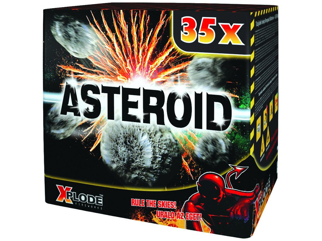 Asteroid je středně velký kompaktní ohňostroj z kategorie F3, který během cca 30 sekund vystřelí 35 ran kolmo vzhůru do výšky přibližně 30 metrů. Každá rána vytváří mohutnou brokátovou korunu, která se rozpadá do různobarevného základu zakončeného modrým efektem. Rychlé tempo výstřelů a finále v podobě salv po třech dodávají ohňostroji energii a napětí až do poslední vteřiny. Skvělá volba pro narozeniny, Silvestr i větší venkovní akce.