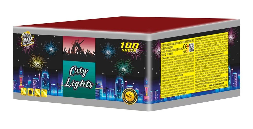 City Lights 100 ran – 70 sekundový ohňostroj plný barev a zvuků. Modré a červené blikavky, zlaté palmy, třaskavé vrby a další. Výška 20 m, kategorie F2, ideální na oslavy. Více informací
