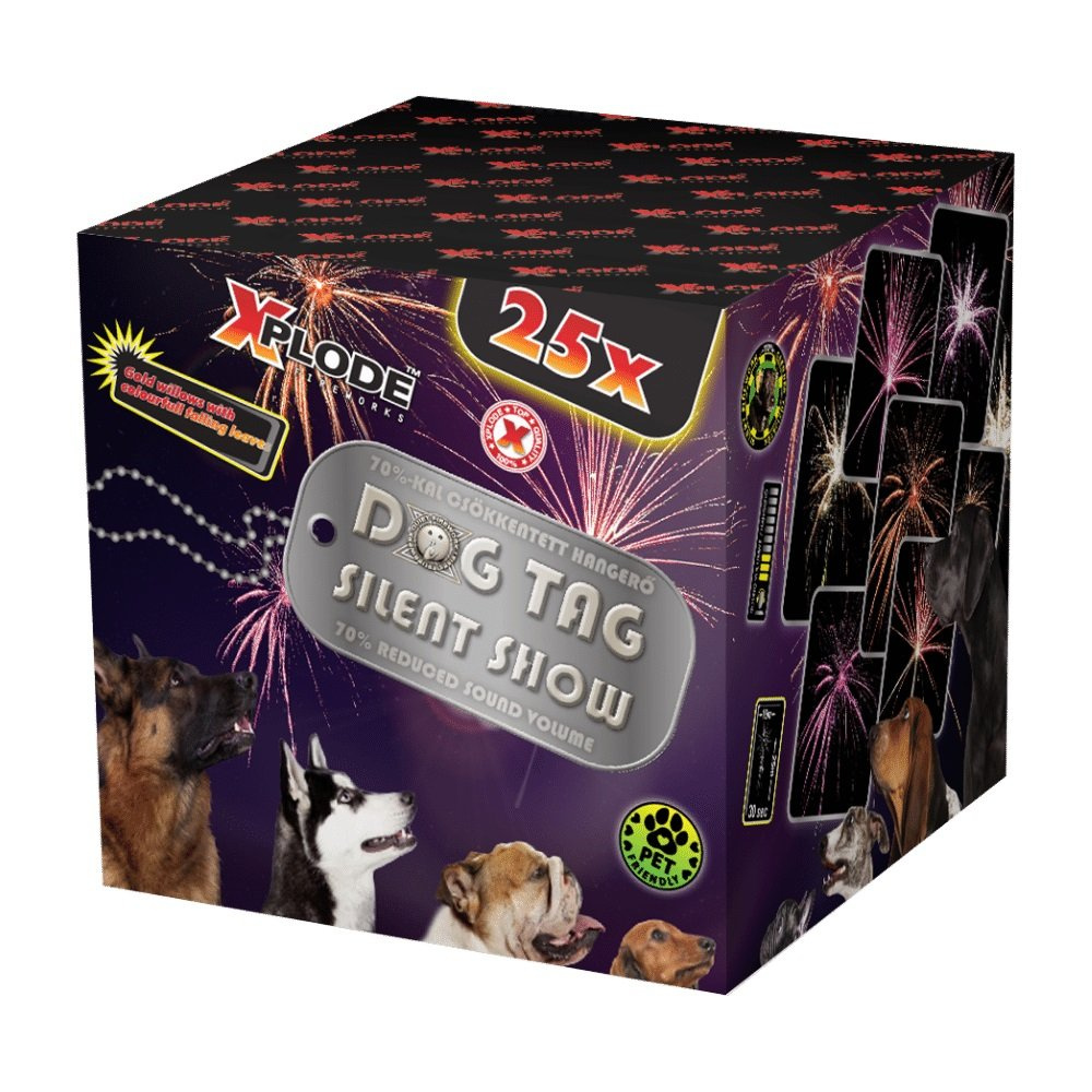 Dog Tag je elegantní tichý ohňostroj z kategorie F2, který během cca 36 sekund vystřelí 25 ran jemných, ale působivých efektů do výšky až 30 metrů. Mezi vizuálně laděné prvky patří efekty padajícího listí, horse tail (koňský ohon), včelky, barevný třpyt a další decentní motivy, které vytvářejí poklidnou a stylovou atmosféru bez nadměrného hluku. Ideální volba pro svatby, kulturní akce, rodinné oslavy nebo místa, kde je třeba ohled na zvířata a okolí.
