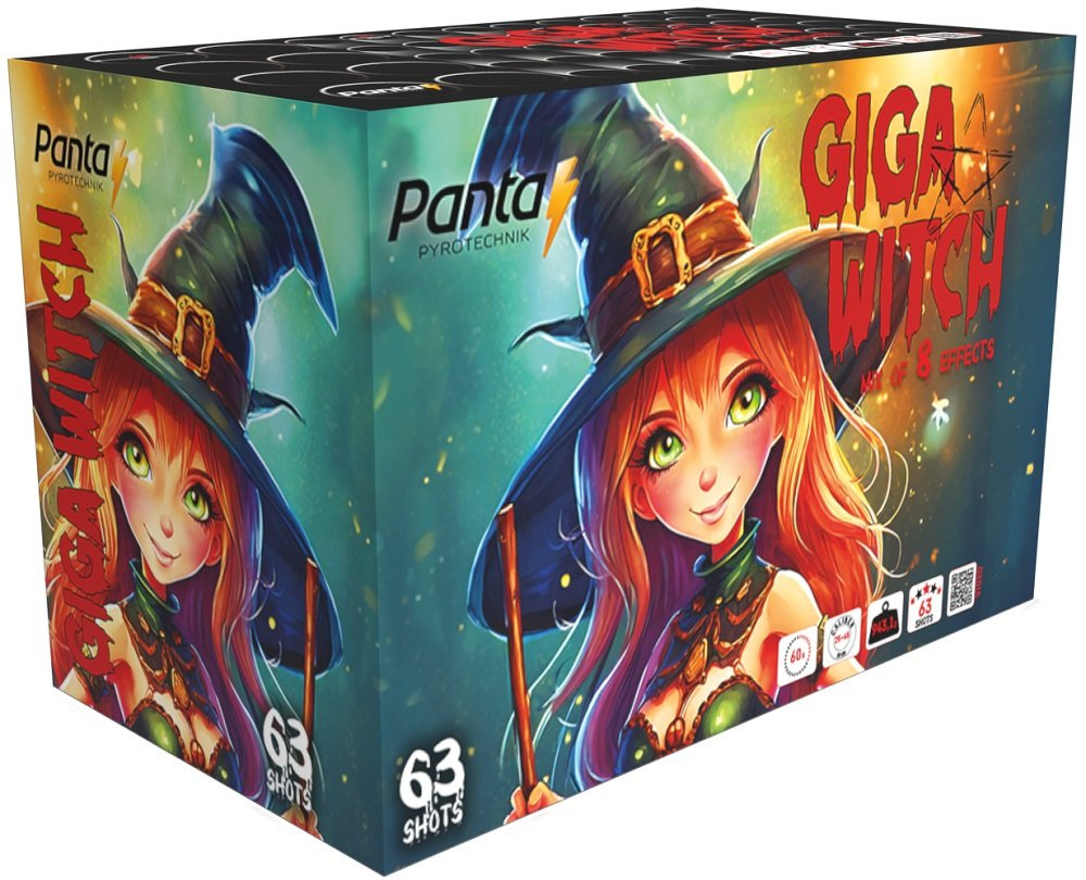 Kompaktní ohňostroj Giga Witch 63 ran nabízí jedinečnou světelnou show s 63 ranami a mixem 8 různých efektů. Díky kombinaci výmetů o průměrech 25 mm a 45 mm poskytuje pestré a velkolepé efekty, které trvají přibližně 60 vteřin. Ideální volba pro ty, kteří chtějí zářit na každé oslavě.