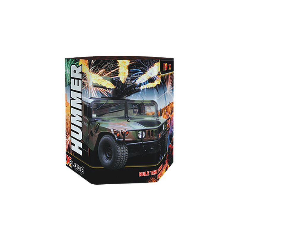 Hummer je kompaktní ohňostroj z kategorie F3, který během cca 35 sekund vystřelí 19 ran kolmo vzhůru do výšky až 40 metrů. Nabízí působivou kombinaci efektů: stříbrné palmy, zelené vrby a brokátové koruny s barevnými středy, které se mění v oslnivý světelný zážitek. Díky své síle a vizuálnímu kontrastu se skvěle hodí jako samostatná podívaná nebo součást větší ohňostrojové show.