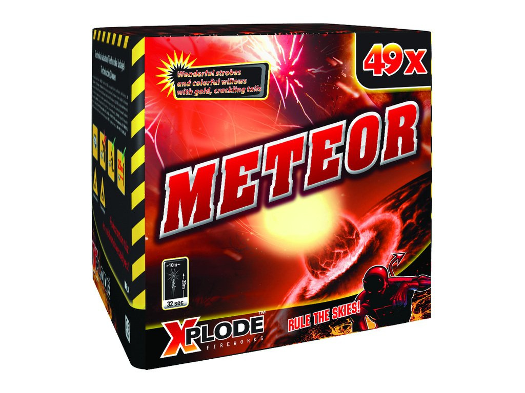 Kompaktní baterie Meteor s 49 ranami přináší krásnou a svižnou ohňostrojovou show. Nabízí různé efekty, jako jsou pestrobarevné pivoňky a zlaté třpytivé chvosty, které vynikají svou jasností a třpytem. Výška efektů dosahuje až 30 metrů, což zajišťuje skvělou viditelnost i na větší vzdálenost. Doba trvání ohňostroje je přibližně 30 sekund, během nichž se můžete těšit na dynamickou a působivou podívanou.