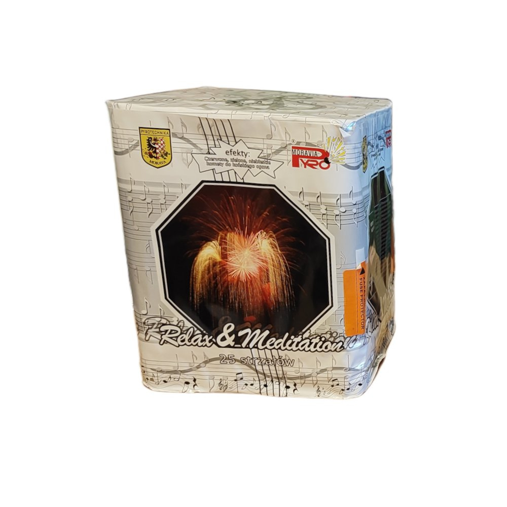 Relax & Meditation je elegantní tichý ohňostroj s 25 ranami, navržený pro klidné a stylové slavnostní chvíle. Během cca 30 sekund vystřeluje efekty do výšky 25 metrů, a to bez hlasitých explozí, což z něj činí ideální volbu pro prostředí, kde je třeba zachovat ohleduplnost k okolí.