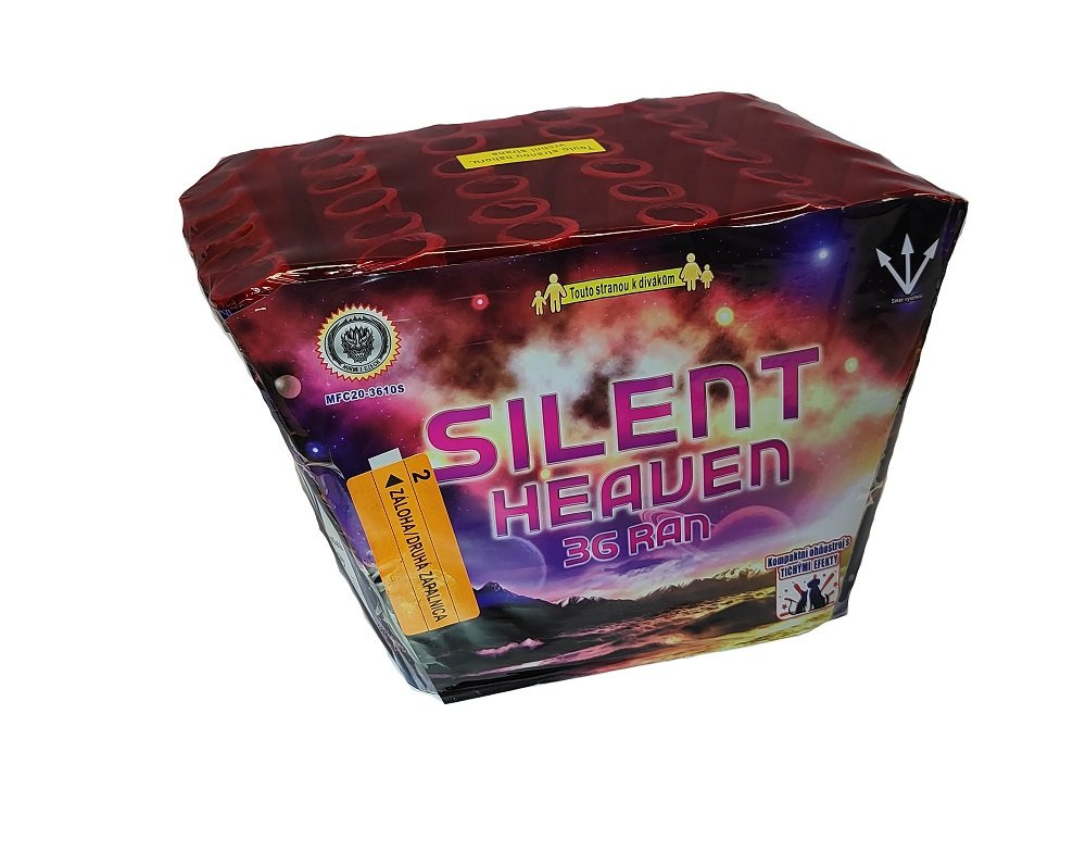 Kompakt Silent Heaven je tichý ohňostroj se 36 ranami, který přináší nádhernou světelnou show bez výrazného zvukového efektu. Tento ohňostroj vystřeluje efekty v 6 salvách po 6 ranách s vyúhlovaným rozptylem, což přidává na vizuální působivosti. Obsahuje modré a zelené miny s doprovodnou zlatou stopou a třpytem, což vytváří elegantní a plynulý efekt na noční obloze. Skvělá volba pro slavnostní příležitosti, kde je potřeba ohromit bez hlasitých výbuchů.