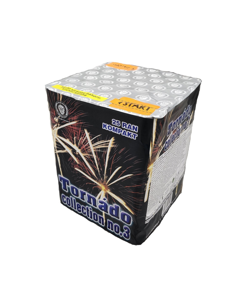 Sestavte svou vlastní hvězdnou přehlídku s kompaktním ohňostrojem Tornádo 3! S 25 ranami nabízí tento ohňostroj výšku efektů až 30 metrů. Zažijte ohromující červené a zelené kytice, které se otevírají jako krásné květiny, doplněné zlatými korunami, které osvětlují noční oblohu. Tato pyrotechnická show bude trvat 45 vteřin, přinášející vám magický okamžik světelného umění. Nechte se unést tímto vizuálním festivalem, který spojuje sílu barev a třpytu. Se skvělým ohňostrojem Tornádo 3 se vaše událost stane nezapomenutelnou!