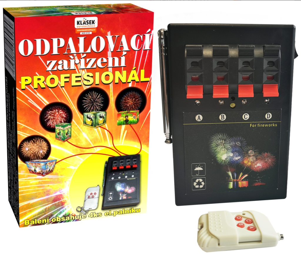Potřebujete spolehlivé odpalovací zařízení pro svou pyrotechnickou show? Odpalovací zařízení na 4 odpaly Klásek je kompletní sada s dálkovým ovladačem a 4 elektrickými palníky, ideální pro bezpečné a efektivní odpalování pyrotechniky. Napájeno 4xAA bateriemi (baterie nejsou součástí balení). Kupte si toto zařízení nyní a zajistěte si kontrolovaný a profesionální ohňostroj! Více informací