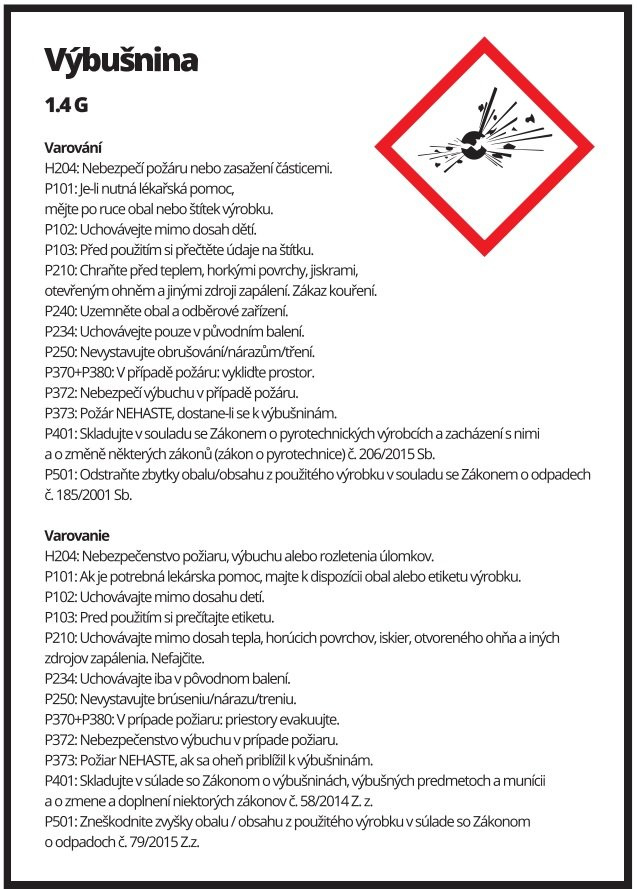 Kontakt na Výrobce/Zastoupení: PYRO MORAVIA s.r.o. IČ: 25381172, Slovenská 1a/1085, pyromoravia@pyromoravia.eu