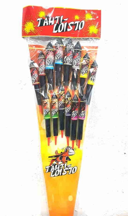 Hledáte ohromující pyrotechniku pro svou oslavu? Sada raket TÄHTILOISTO (14 ks) nabízí pestrou škálu efektů, včetně modrých a žlutých perel, pivoňek a stroboskopických efektů. S výškou efektu mezi 30 až 35 metry tyto rakety vytvoří nezapomenutelnou světelnou show. Kupte si tuto sadu nyní a užijte si fascinující atmosféru na každé oslavě! Více informací