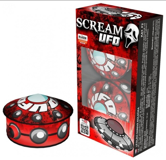 Připravte se na jedinečný zážitek s naším pyrotechnickým výrobkem UFO Scream! Tato inovativní zábava zahrnuje dva pískající létající talíře s hypnotizujícím zeleným světlem. Při jejich vzletu budou tyto talíře vytvářet vzduchem probíhající zvuk, který dodá celému okamžiku neobyčejný nádech.