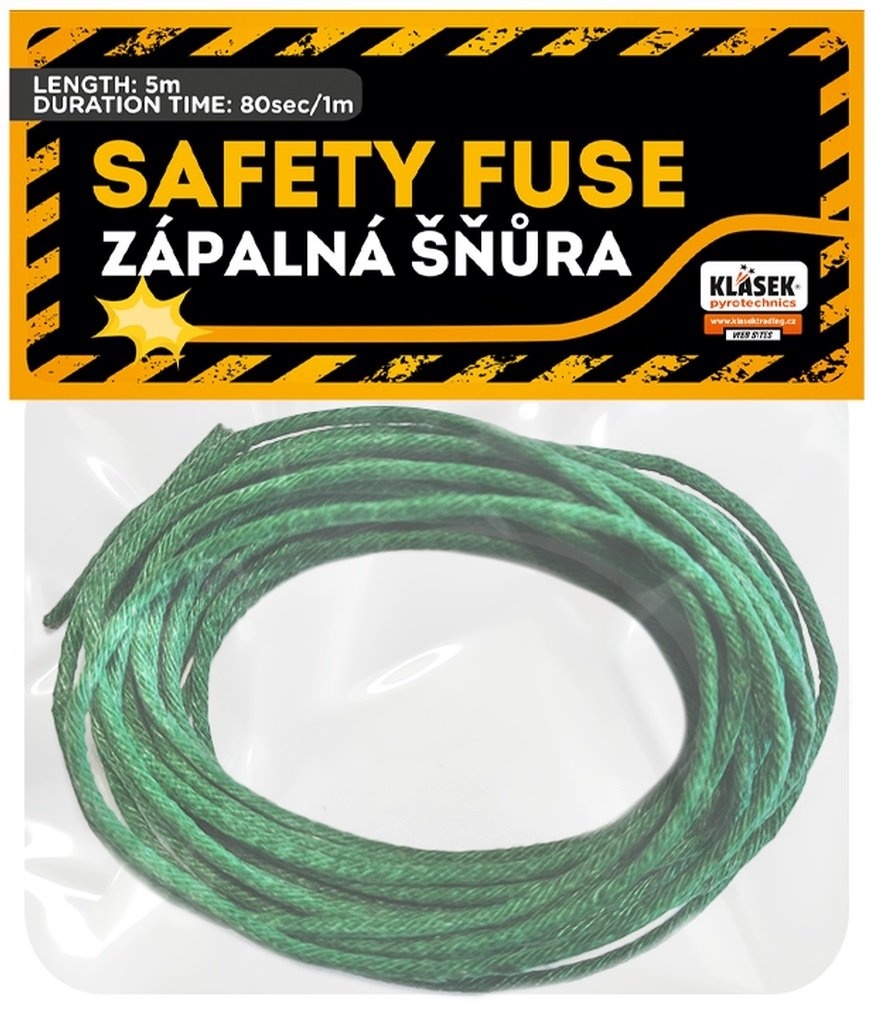 Hledáte spolehlivou zápalnou šňůru pro vaše pyrotechnické efekty? Zelená zápalná šňůra s dobou hoření cca 80 sekund na 1 metr je ideálním řešením pro přesné a bezpečné odpálení pyrotechniky. Dodává se v jednom 5metrovém kusu, což poskytuje dostatek materiálu pro širokou škálu aplikací. Kupte si tuto šňůru nyní a zajistěte si úspěch každé pyrotechnické show! Více informací